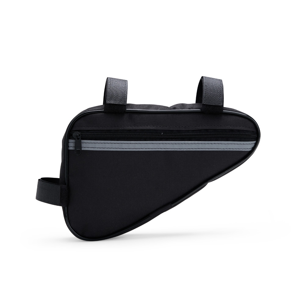 Esta bolsa para quadro é uma opção prática para carregar objetos enquanto estiver andando de bicicleta. Confeccionada em Oxford resistente e impermeável, a bolsa conta com único compartimento com fechamento em zíper, o que a torna ideal para armazenar objetos menores de forma eficiente, protegendo todo o conteúdo de seu interior contra a chuva e respingos dágua durante o trajeto. Conta com uma tira refletiva costurada para maior visibilidade no trânsito, além de alças de nylon com fechamento em