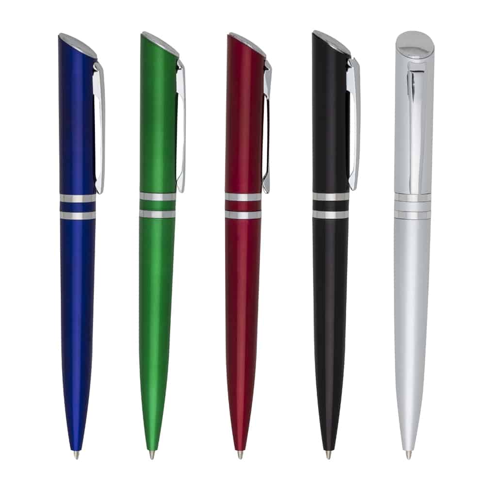 Caneta plástica com carga esferográfica azul e acionamento por rotação. OBS.: PEDIDOS MÍNIMO DE 50 PEÇAS!