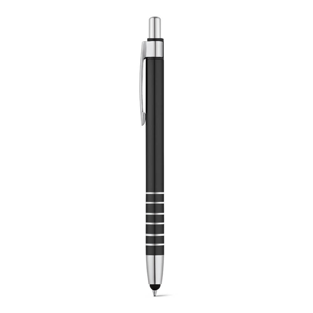 Esferográfica em alumínio com ponteira touch. Até 1,5 km de escrita. ø9 x 138 mm