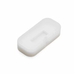 Estojo para pen drive Pico A em plástico transparente com parte interna revestida de espuma, fecha por encaixe.