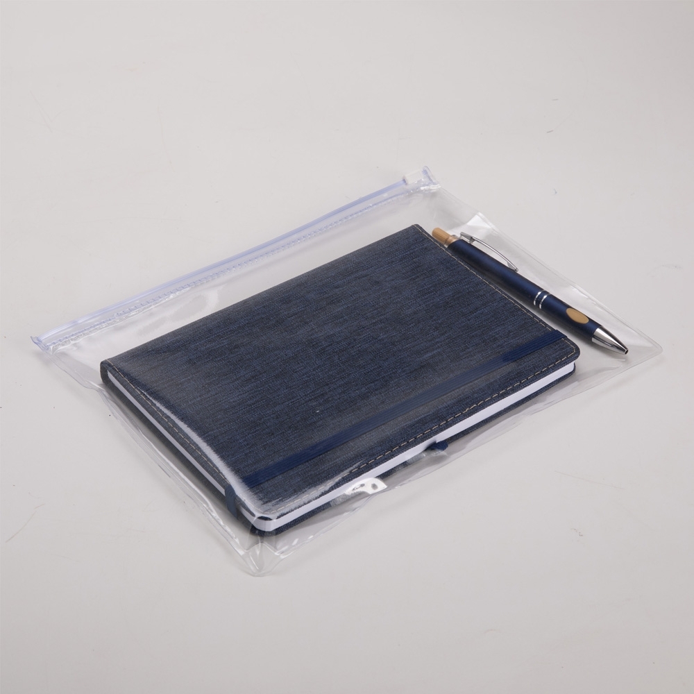 Pasta feita em plástico transparente com fechamento zip zap deslizante.