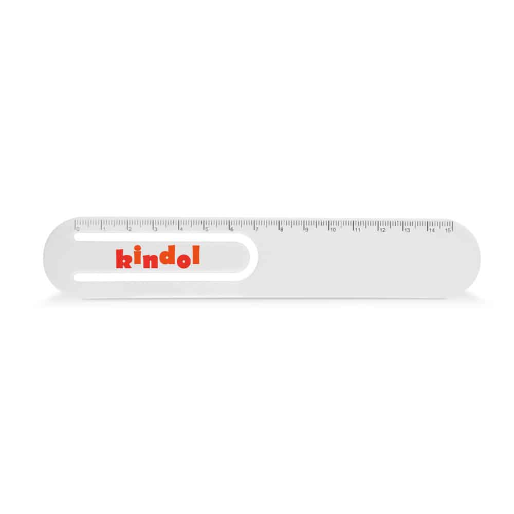 Régua com escala de 15 cm impressa, cantos redondos e com clipe. 174 x 31 x 2 mm